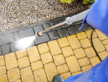 Pressure washing that lifts dirt, oil, and stains from concrete, paving, or asphalt surfaces
